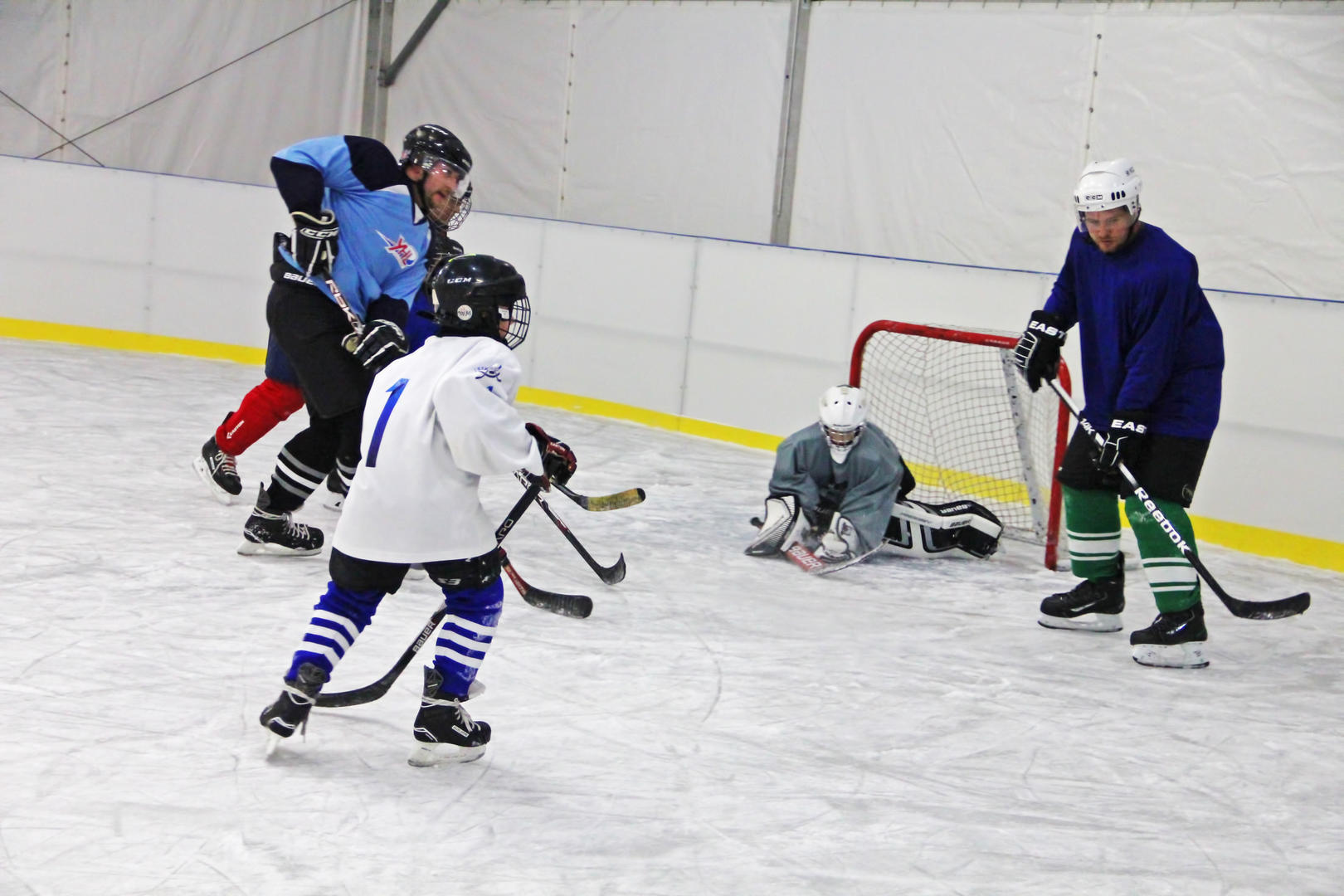 Mivel már üres kapura elég jól megy nekik a lövés, ez alkalommal beálltak a kiskapusok nehezítésnek, és pár kis játékos is erősítésnek.