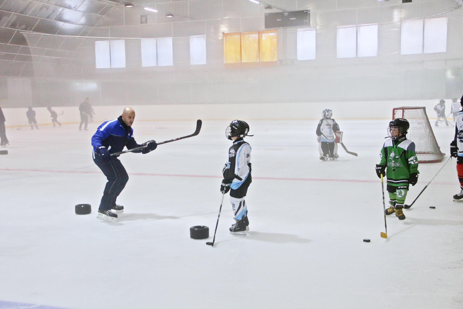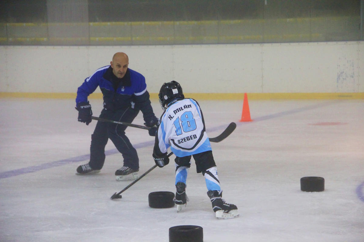 Ma az U8-U10 hokis gyerekek a jégen is megismerhették új edzőjüket, Mariust.
